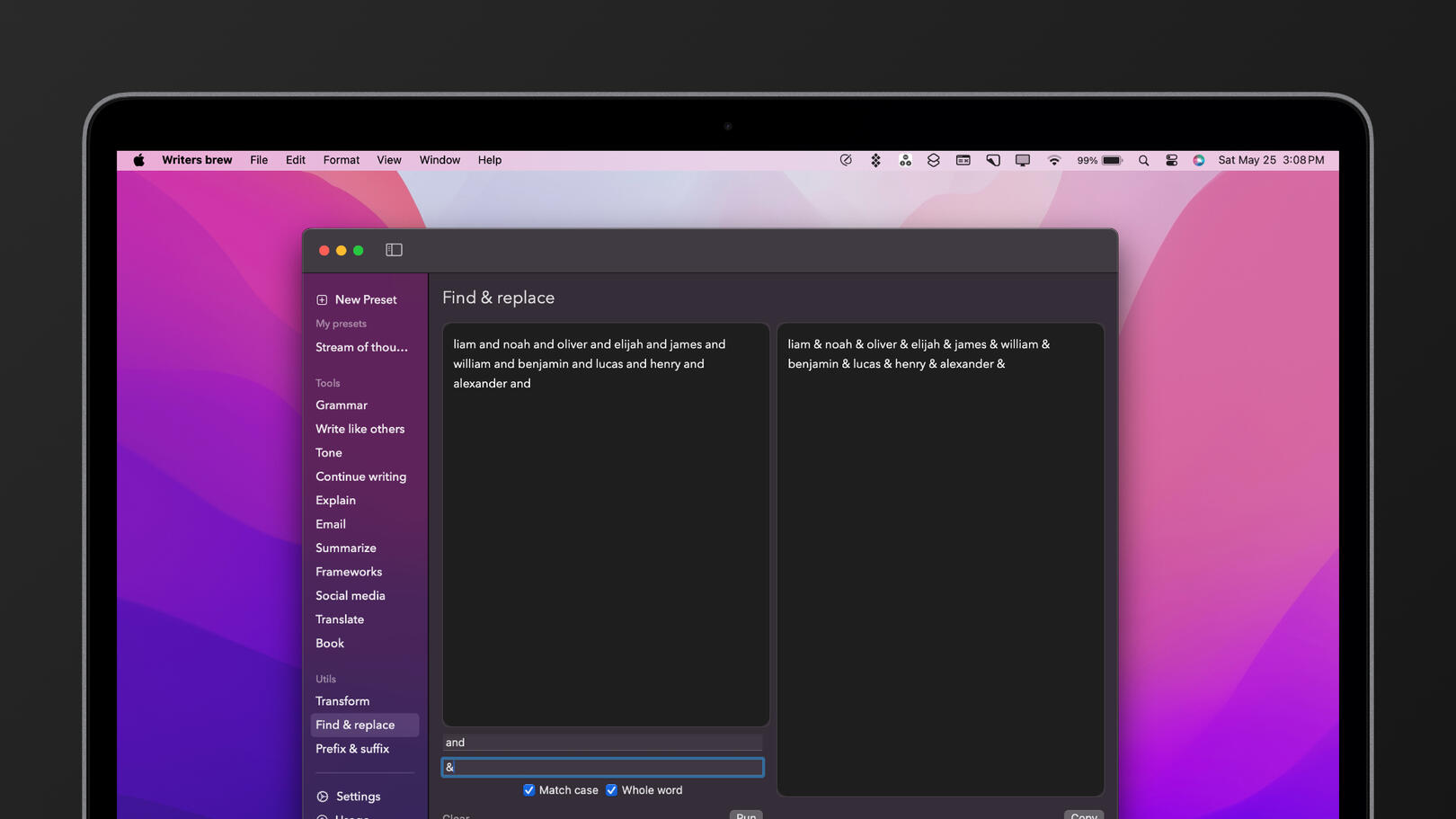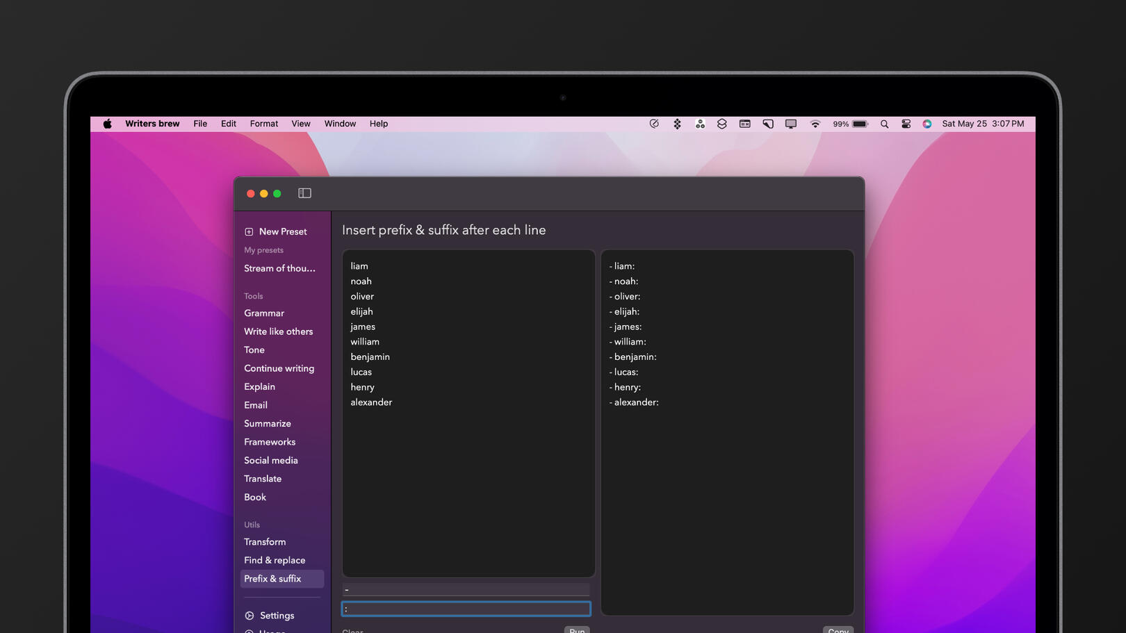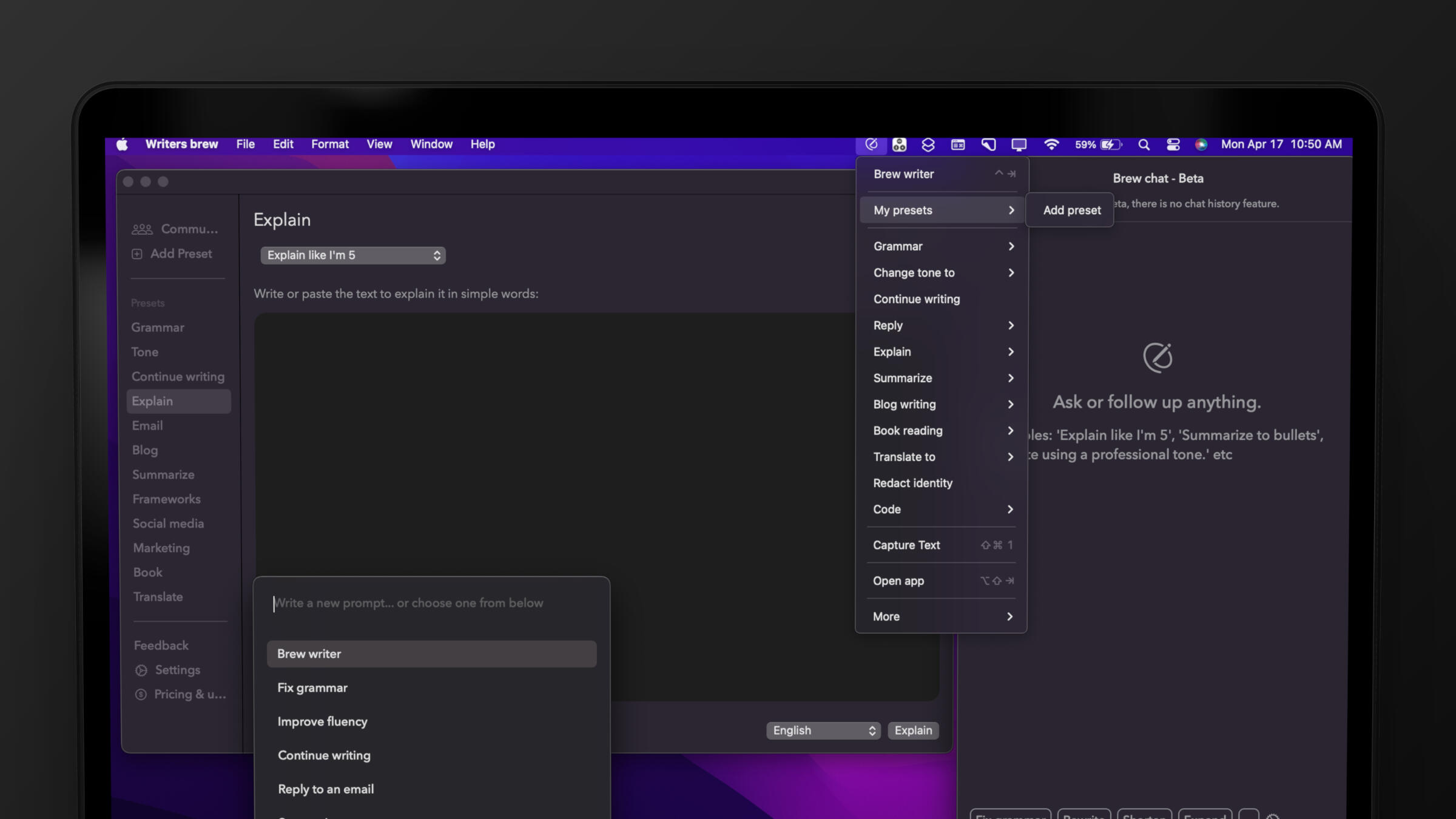 If you use PopClip, you probably already know that the app pops up when you select text in any application, providing you with immediate access to helpful actions. Now, with Writers Brew✨, you can take advantage of this feature to access artificial intelligence for transforming your content into any desired form.