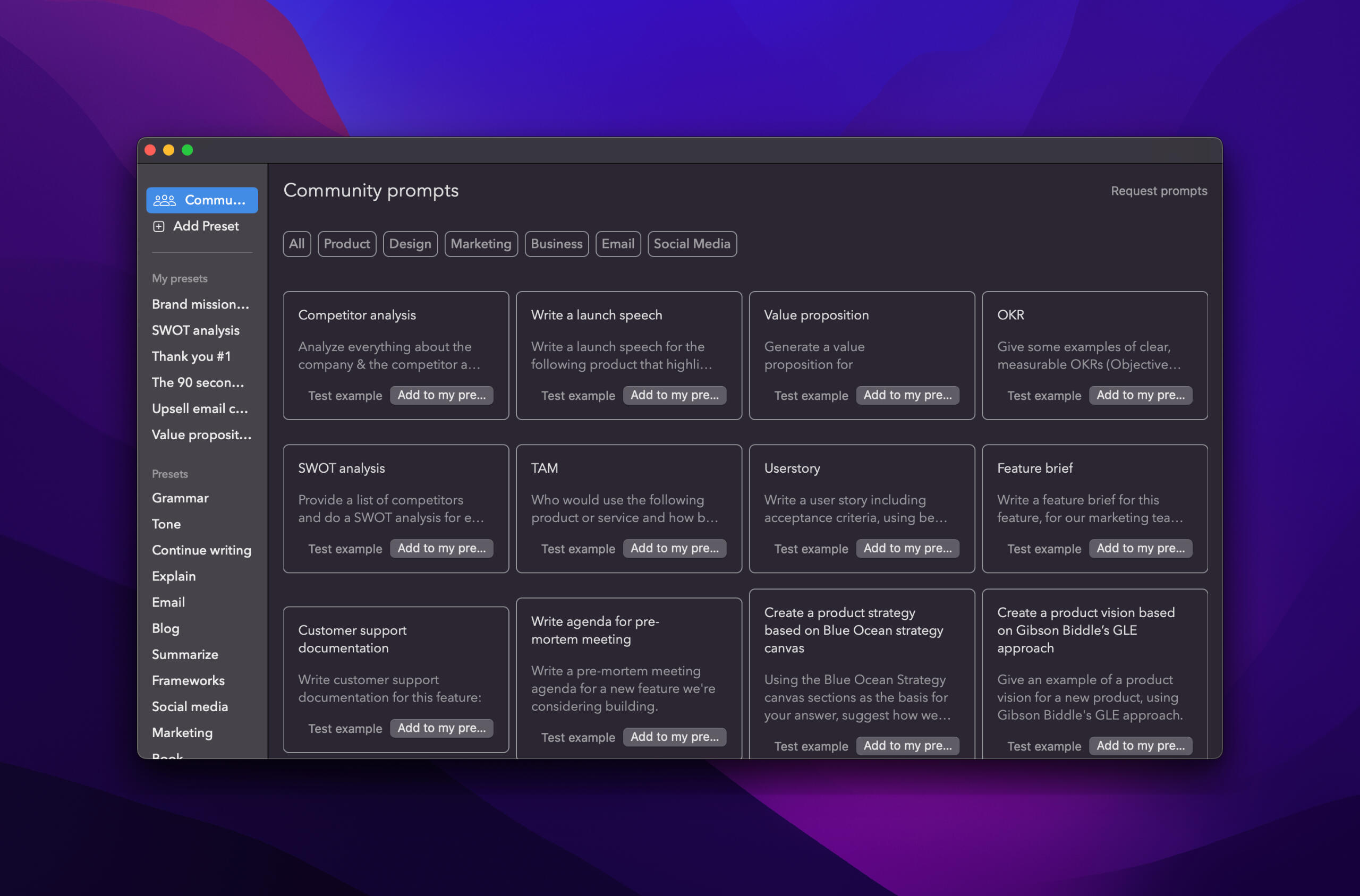 To unleash your creativity, BYOP allows you to write and save your own prompts as presets.