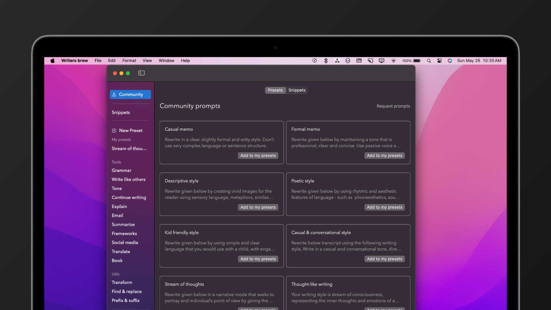 url: writerbrew://presets