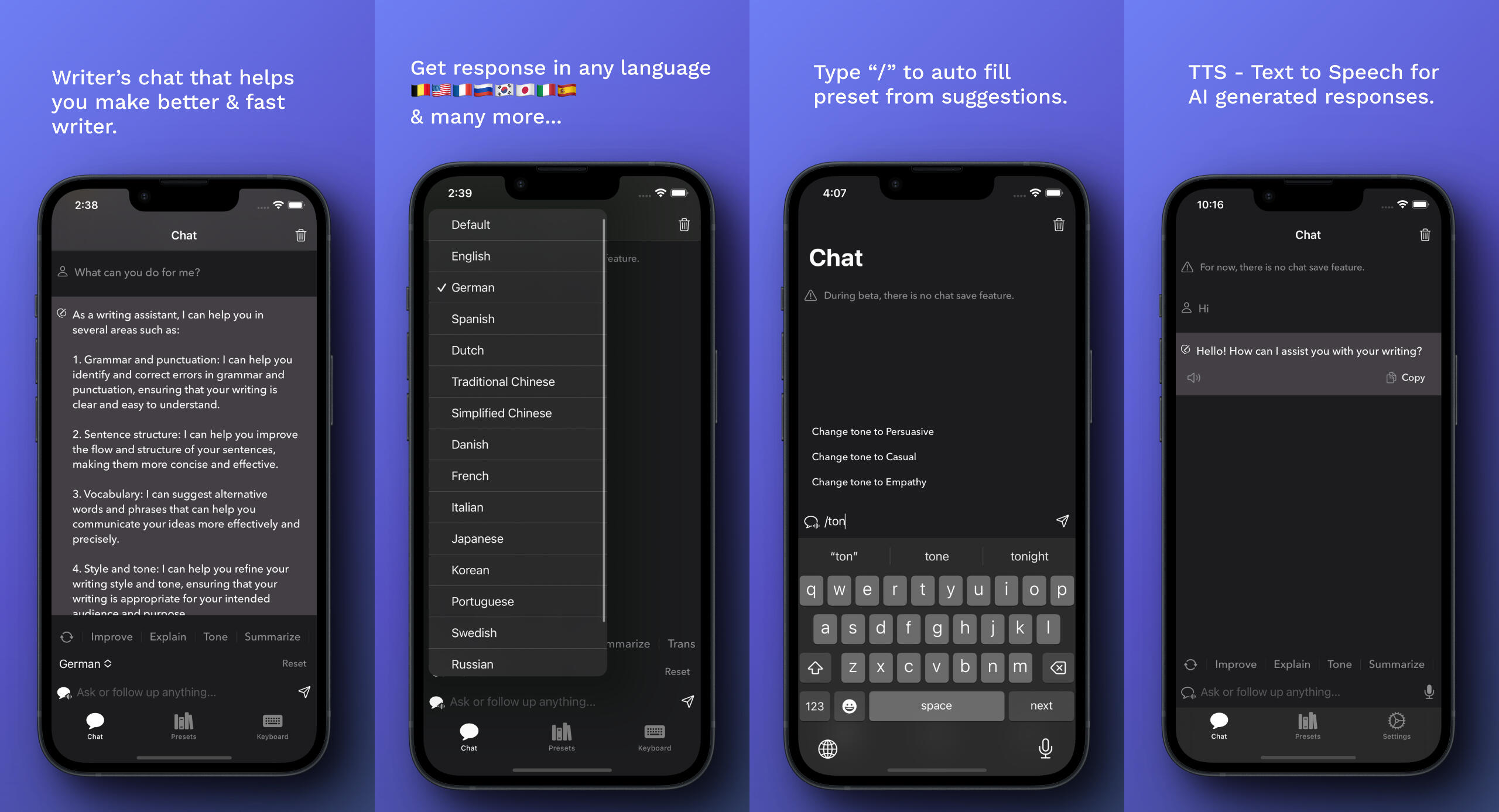 WRITE. IMPROVE. REPLY. SUMMARIZE. TRANSLATE.
